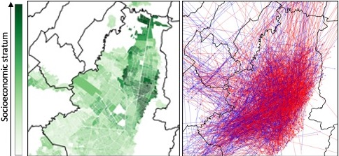 In Bogotá, commuters working in low-income areas were about equally likely to stay home or continue commuting, while commuters working in high-income areas were much likelier (85%) to stay home. Importantly, commuters traveling from low-income residences to high-income work destinations were about twice as likely (80% vs. 40%) to stay home as those going from low-income residences to low-income destinations.