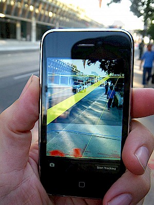 Our research has focused on the design of novel AR systems that leverage the emergent standard for vehicular communications2, in the form of vehicle-to-vehicle (V2V) and vehicle-to-infrastructure (V2I) systems. The transmission range for such communication can easily reach 500m on motorways but can drop to 150m or even less in urban environments. The frequency band is divided into several channels, including a control channel for coordination and transmission of traffic safety messages. These safety messages can be viewed as SMS that vehicles send to each other, which can contain information such as “ambulance approaching from the left” or “airbag deployed 500m in front”.