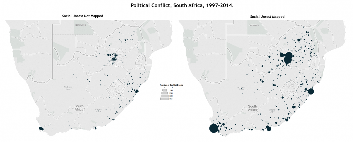 There has also been a rise in demonstrations, especially revolt and reform protests, in Africa relative to average levels a decade ago. For example, a more peaceful picture of South Africa emerges when the high number of protests that occur there are not collected and recorded, while a relatively low(er) number of violent conflict events is noted.